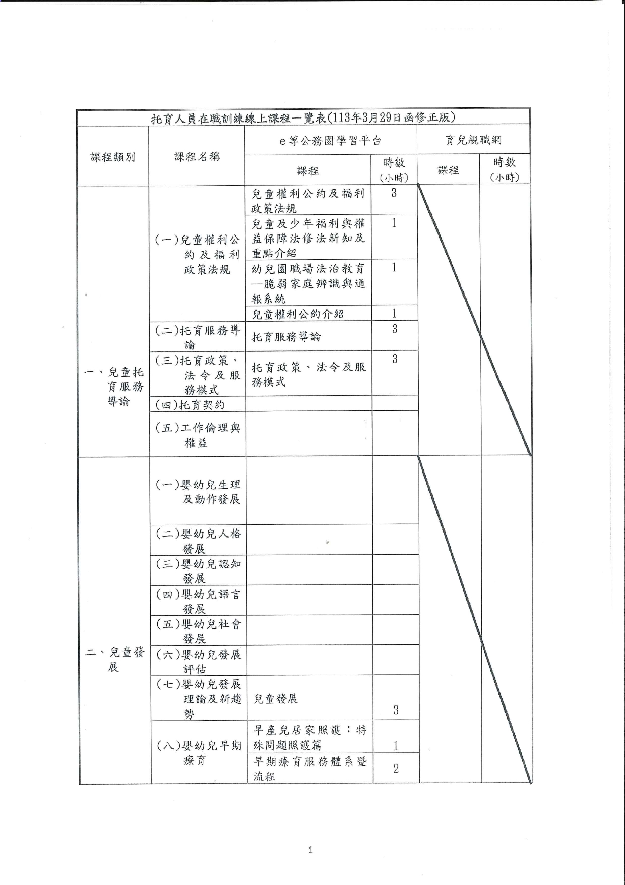 115年托育人員在職訓練線上課程表