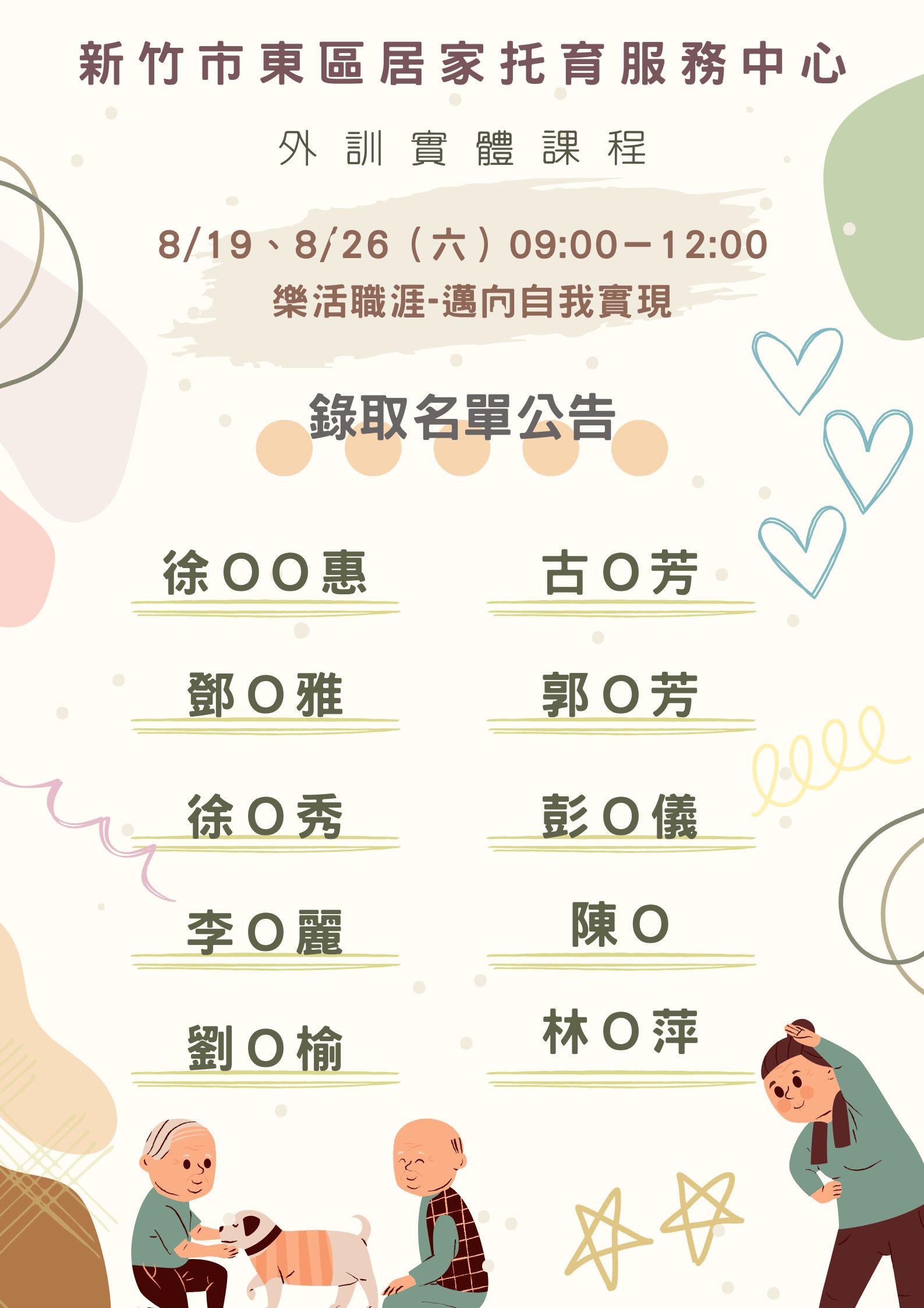 第二梯次8/19(六)、8/26(六)【樂活職涯-邁向自我實現 】課程錄取名單。