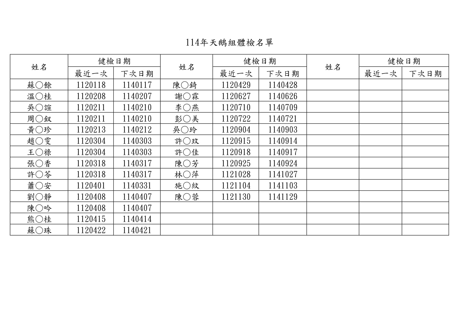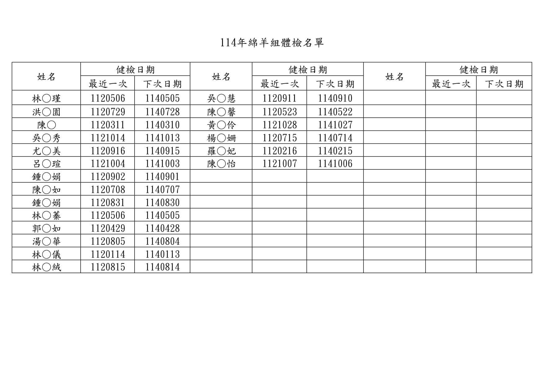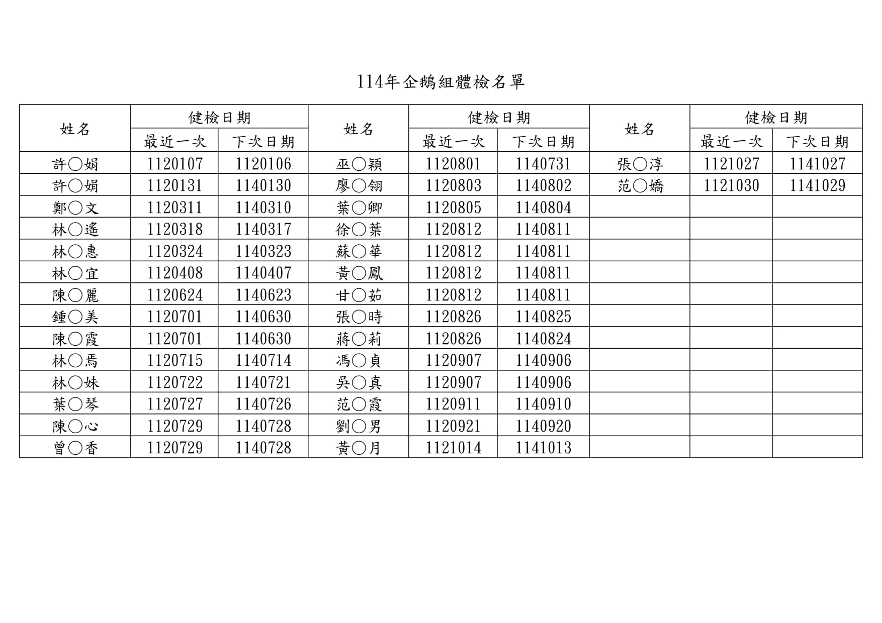 ★114年體檢名單:https://reurl.cc/5DZk5q