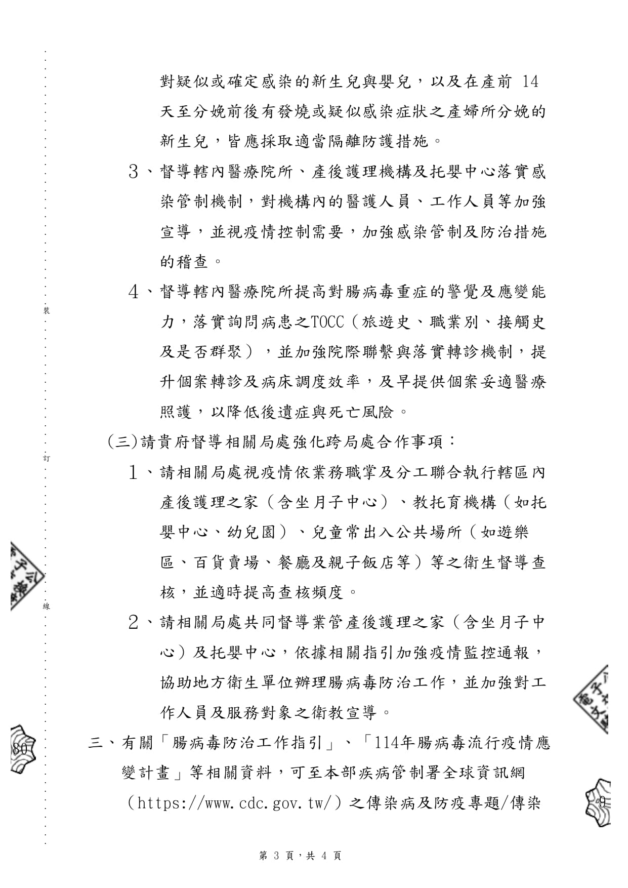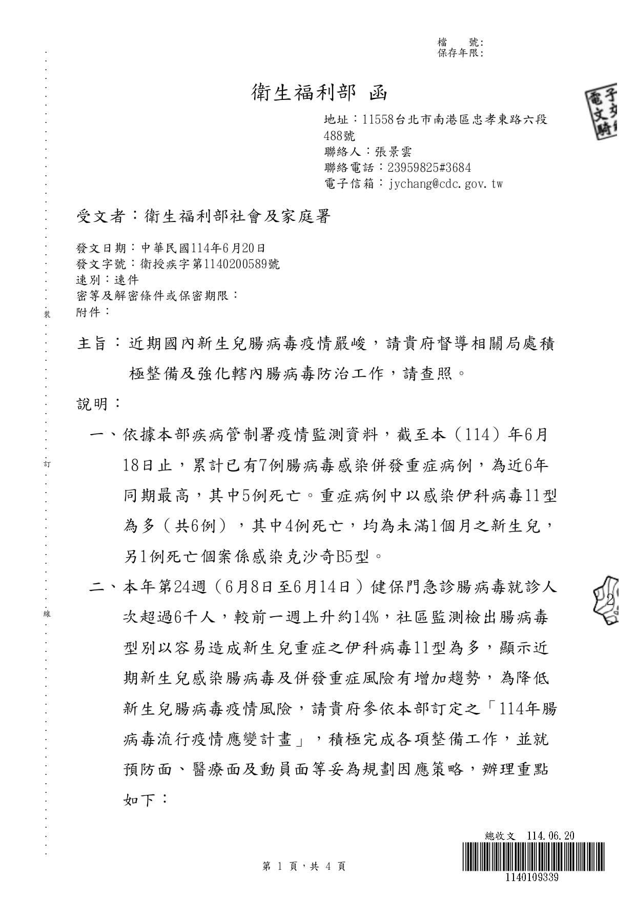 近期處腸病毒高峰期,請托育人員留意居家環境之清潔及幼兒之健康,並可參考衛福部提供之腸病毒防治工作指引及114年腸病毒流行疫情應變計畫。