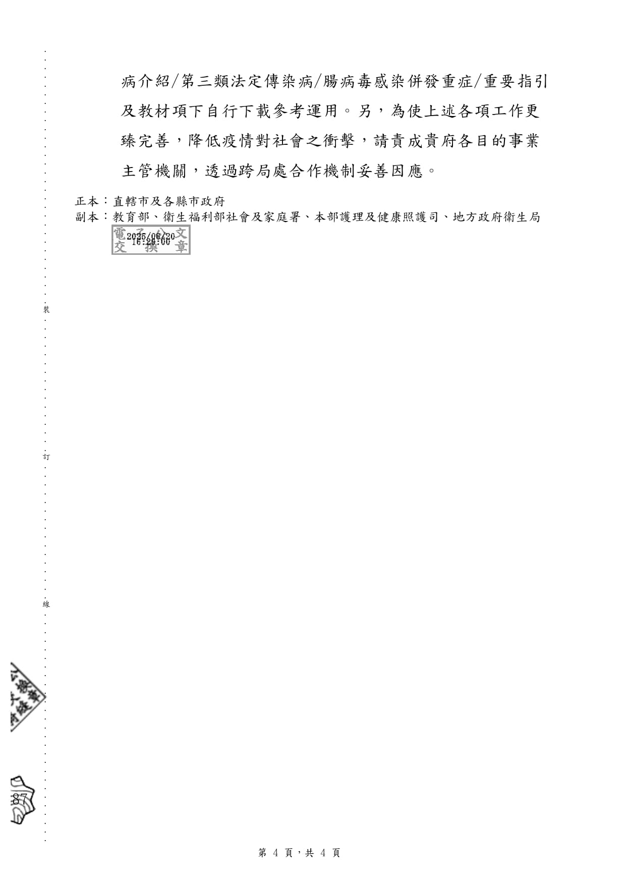 函轉衛服部及社家署之腸病毒資訊