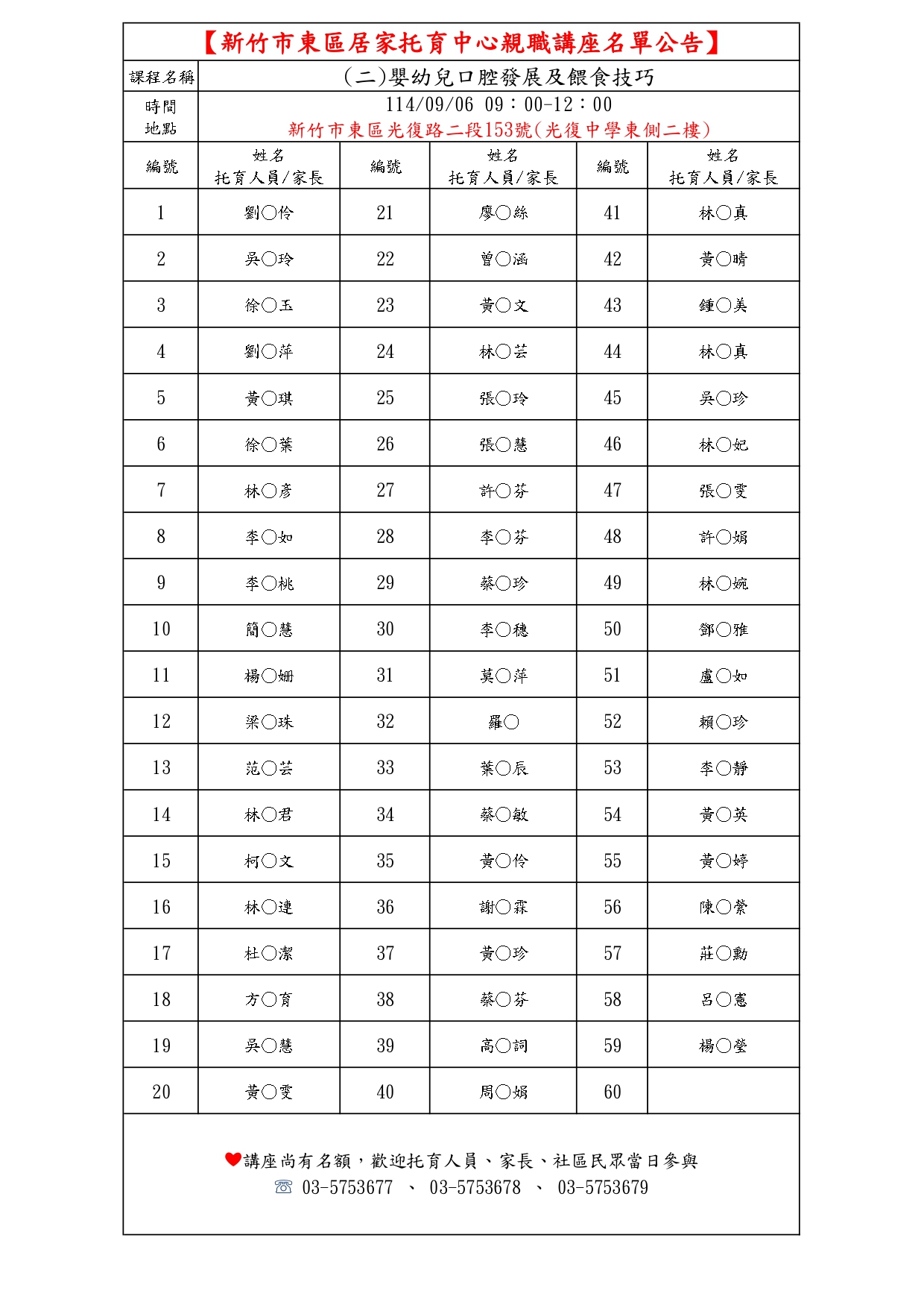🔔114/09/06(六) 【東區】中心親職講座名單公告