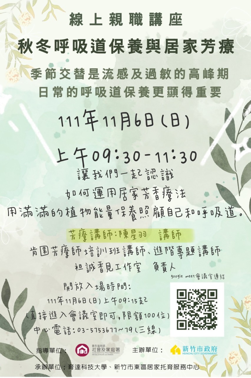 線上講座時間:111.11.6(日)上午9:30-11:30
